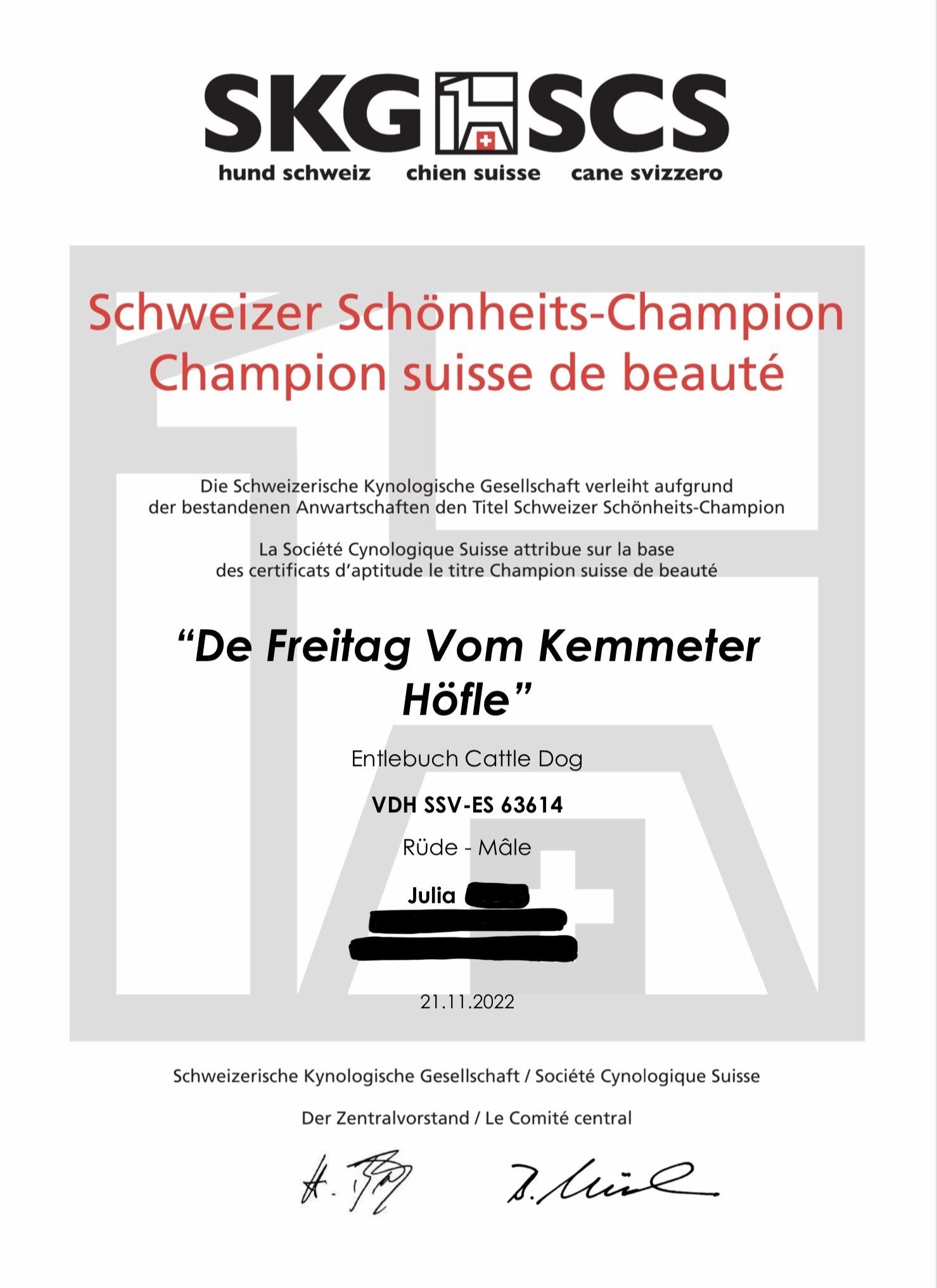 Schweizer Ausstellungs-Champion (SKG/SCS),